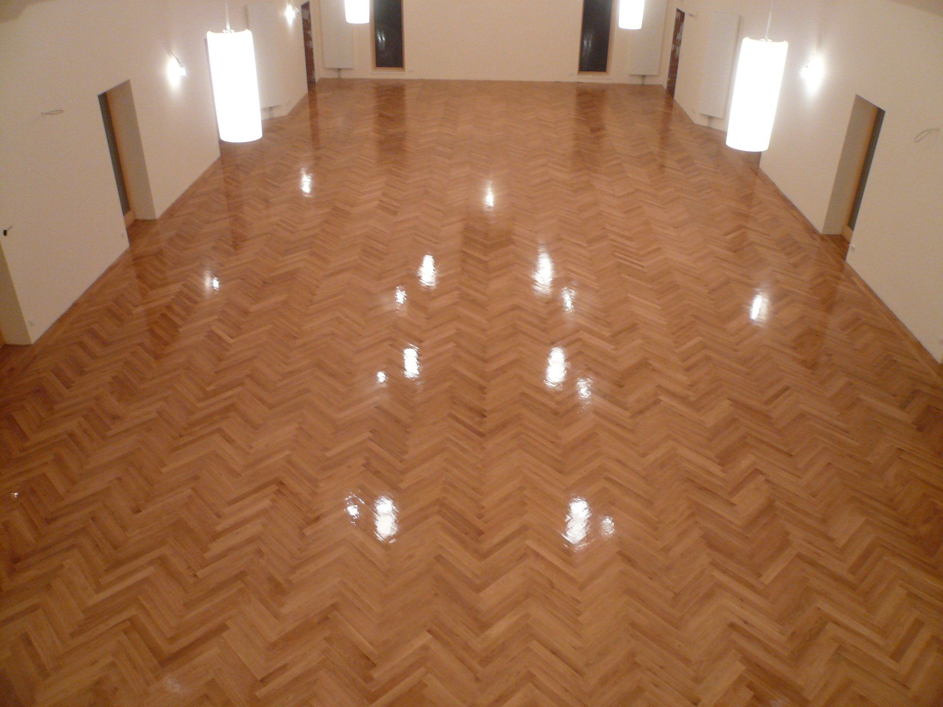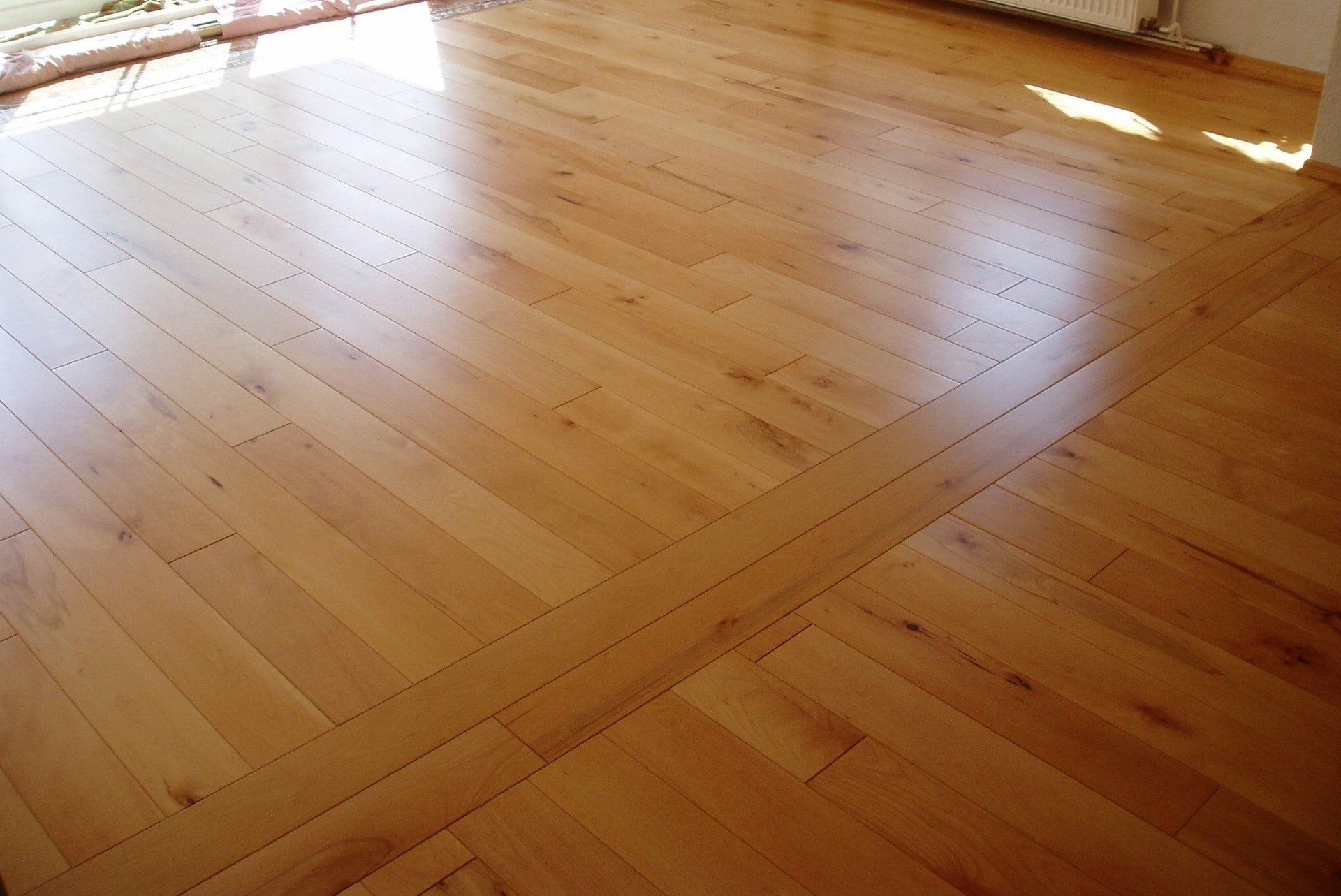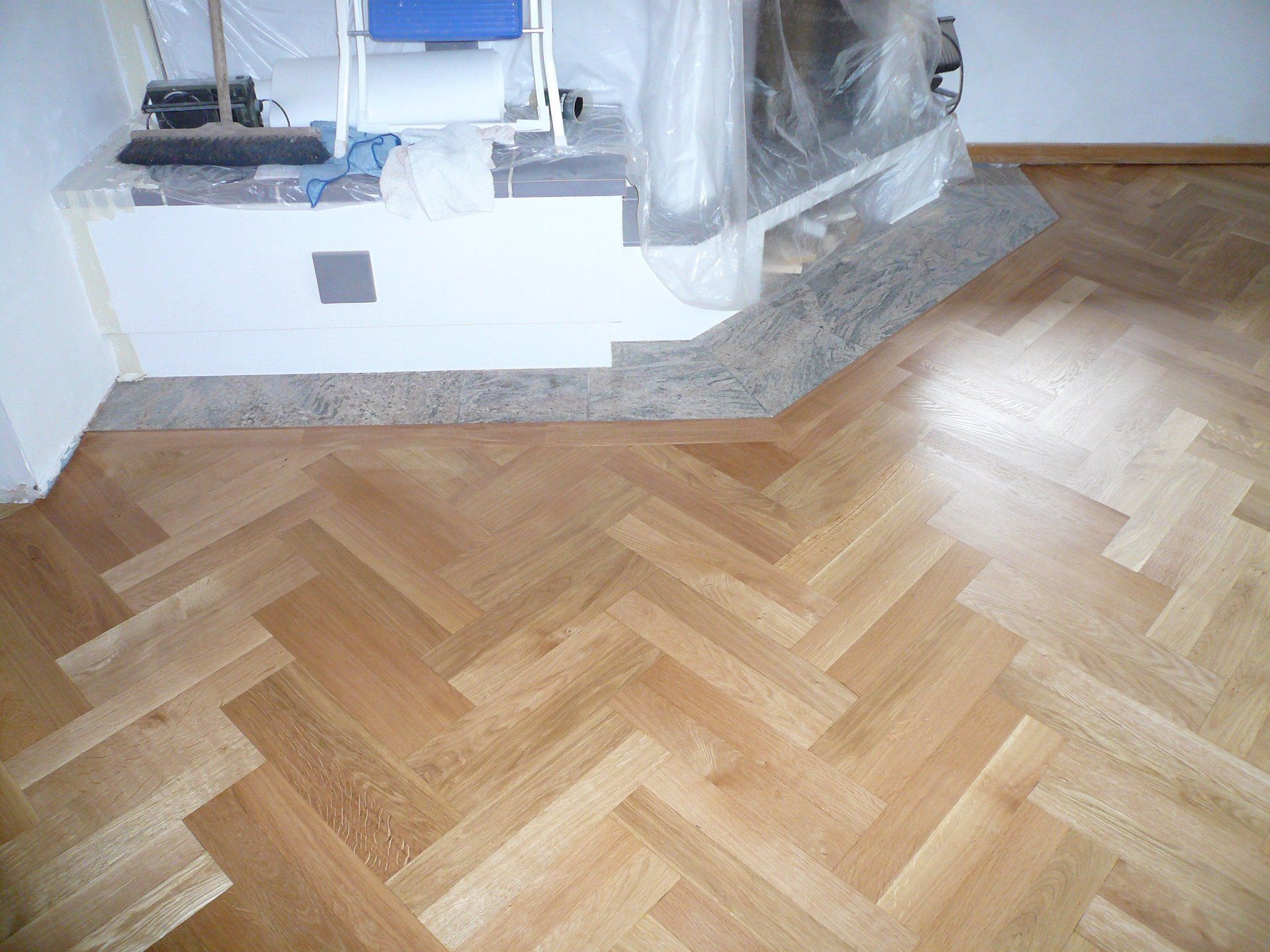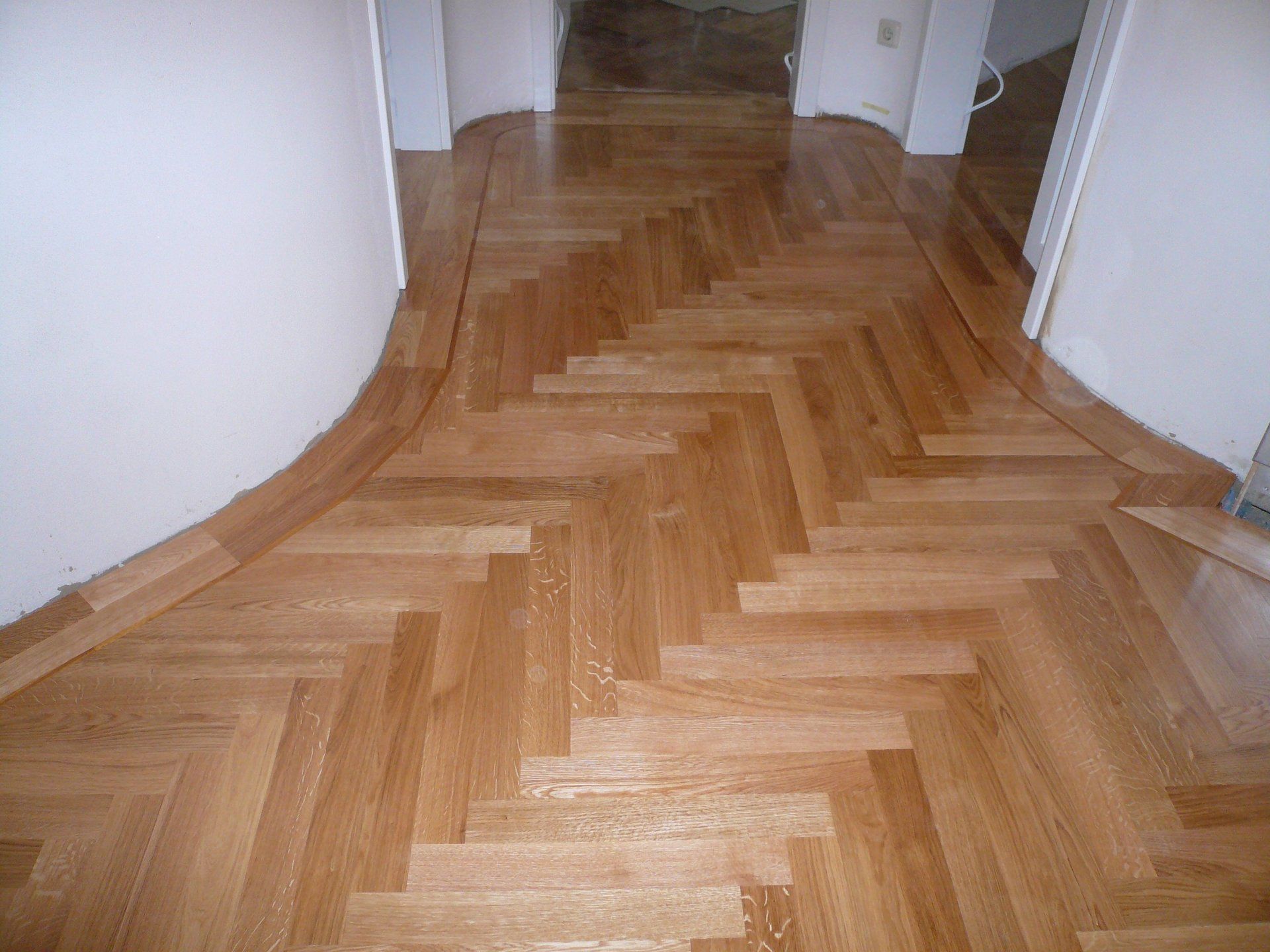 *Eiche natur* auf Fußbodenheizung im Fischgatverband mit umlaufenden Fries.