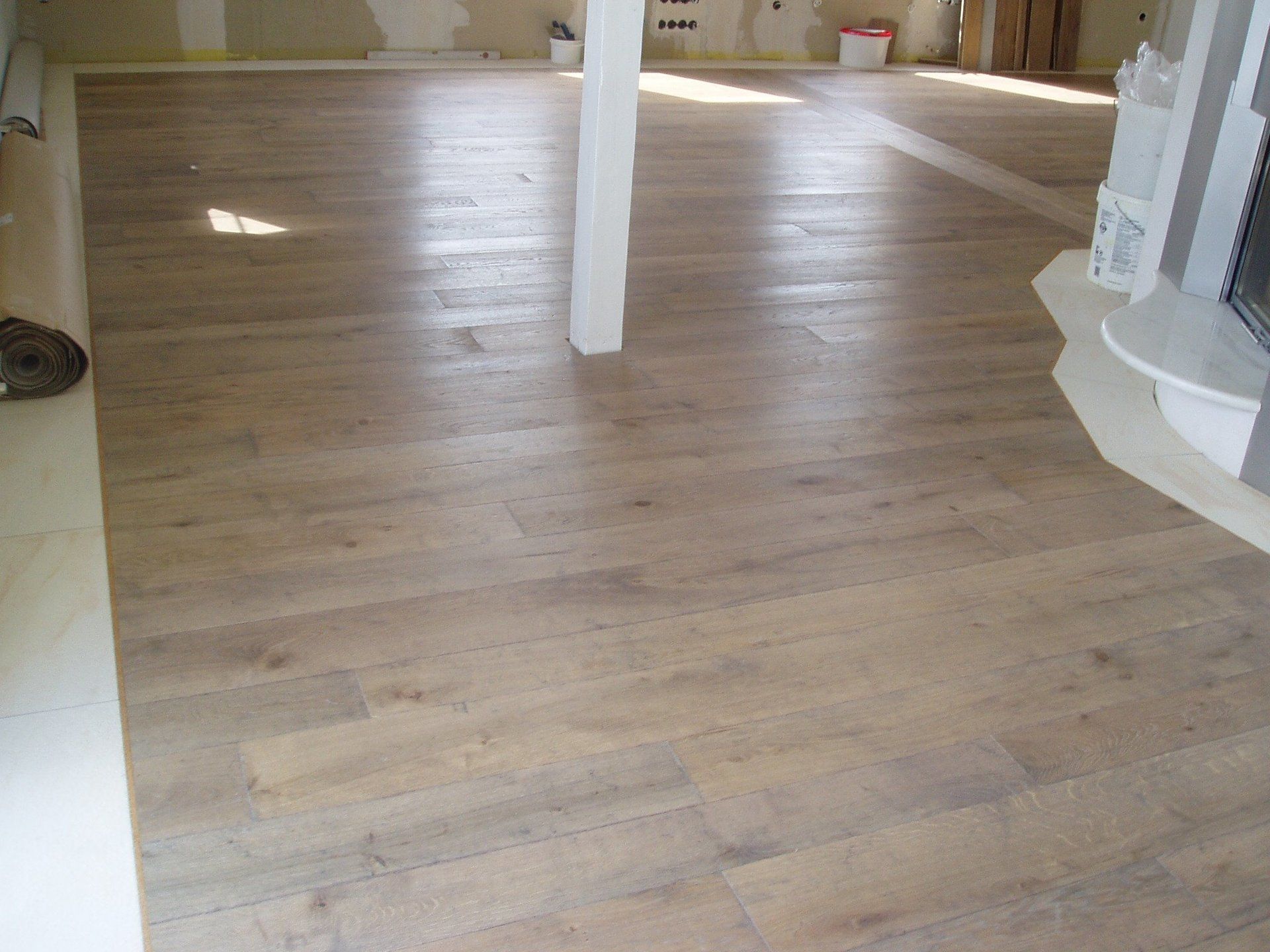 * Eiche Eiche Used Look* 3 verschiedene Breiten in einem Fliesenfreis verlegt, 2/3 der Fläche auf Fußbodenheizung